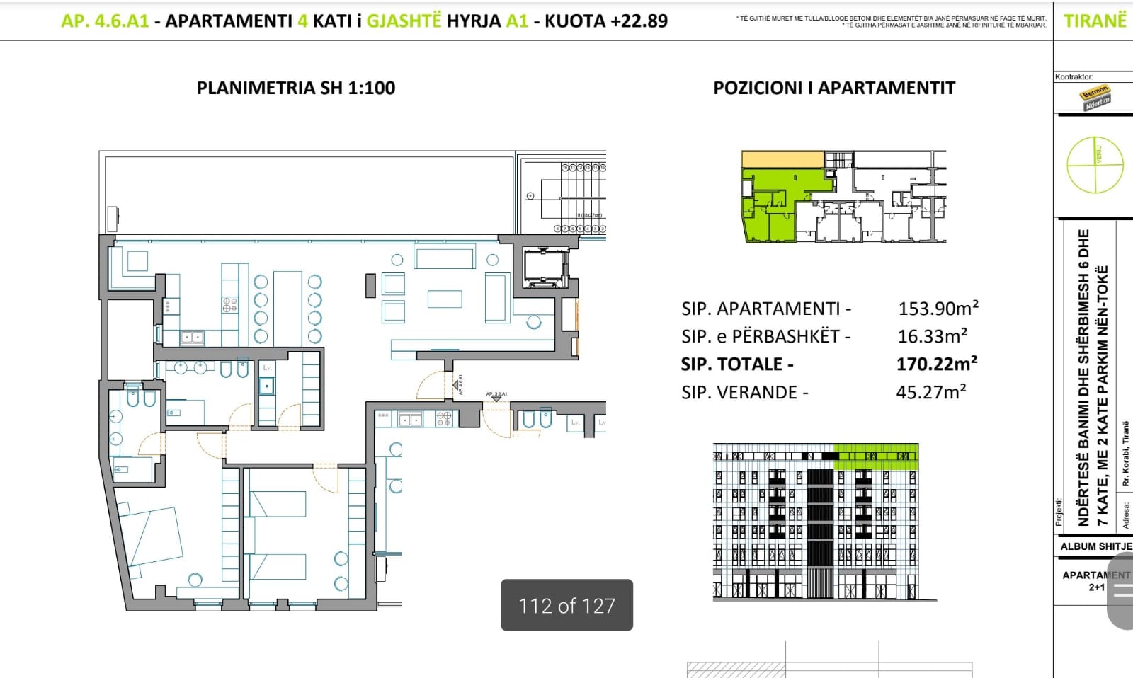 • Madhësia e pronës: 170 m2/ 45 m² verande m²